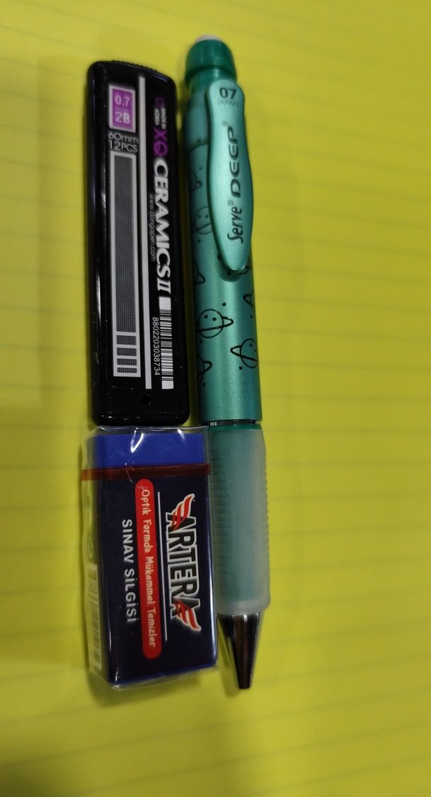 Renkli Yeşil Mekanik 07 Kalem ve Sınav Silgisi