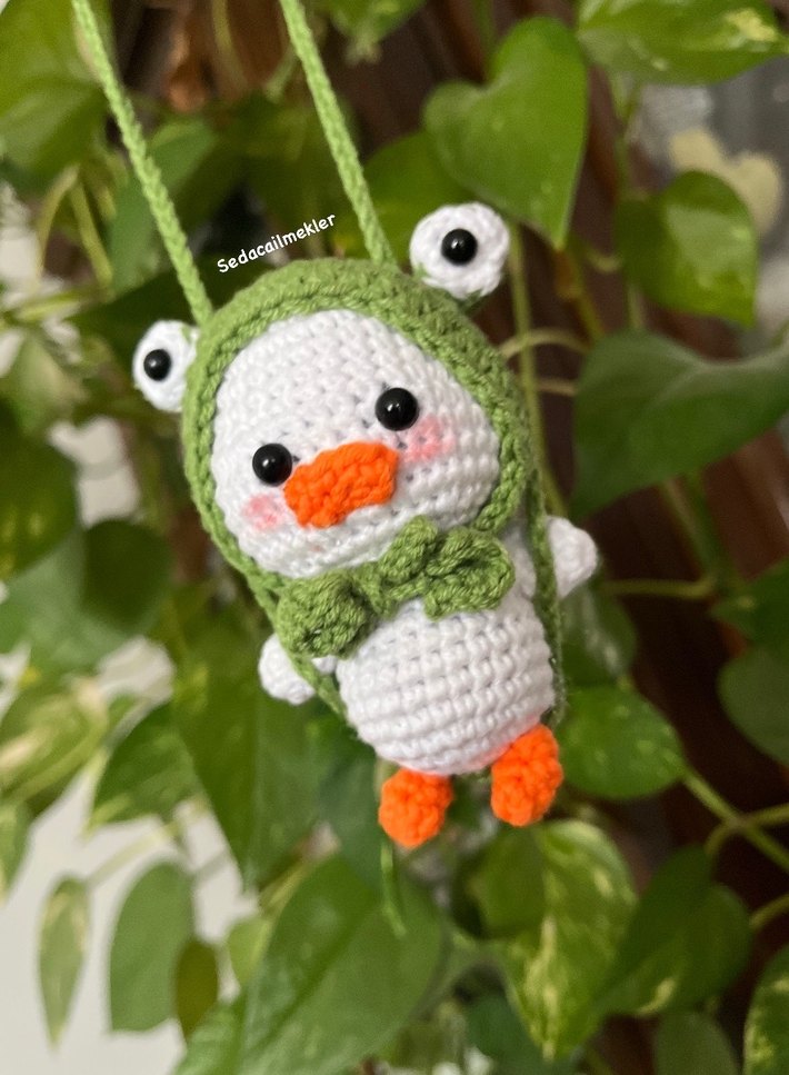 Renkli, yeşil örgü dış katmana sahip, beyaz gövdeli, turuncu gagalı ve ayaklı peluş oyuncak. Sevimli papyon ve üstte iki göz sapı bulunur. Araba dikiz aynası süsü olarak yada ucuna anahtarlık aparatı takilarak anahtarlık olarak kullanılabilir