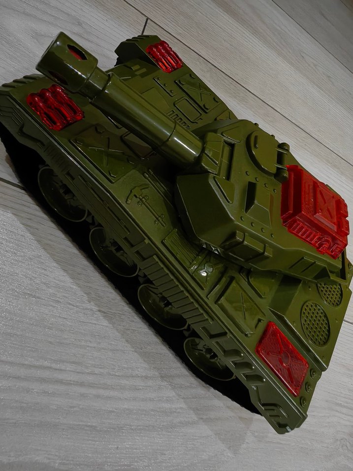 Detaylı özelliklere sahip renkli yeşil oyuncak tank araba, gerçekçi tasarımla çocukların hayal gücünü destekler.