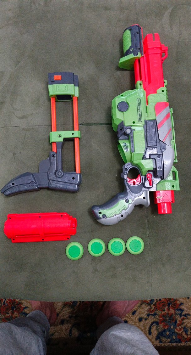 Renkli Yeşil Oyuncak Tüfek ve Mermiler 8 tane mermisi var
