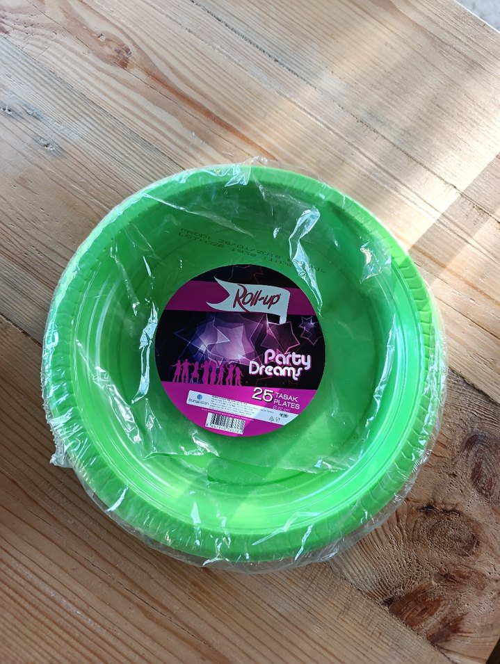 Renkli yeşil parti tabakları 25'li pakette, kutlamalar ve etkinlikler için uygun.