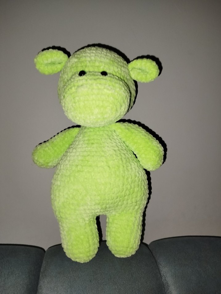 Yumuşak dokulu, renkli yeşil peluş sevimli hipopotam oyuncak. Sarılmak ve dekorasyon için uygun.
