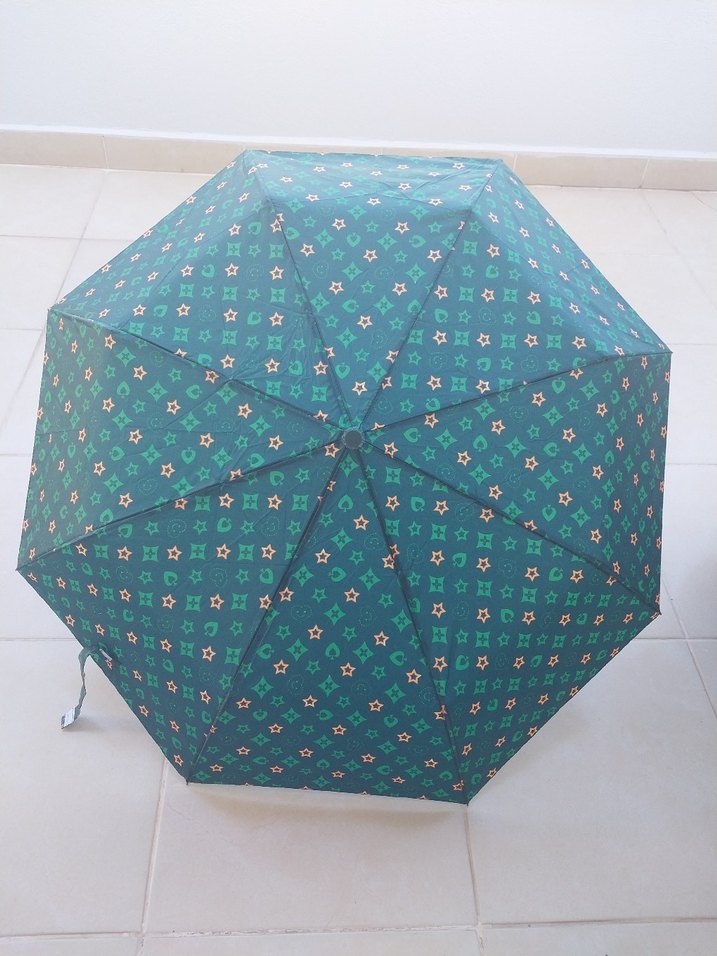 Renkli yeşil pileli tasarımıyla bohem Paris tarzını yansıtan kadın şemsiyesi. sifir urun