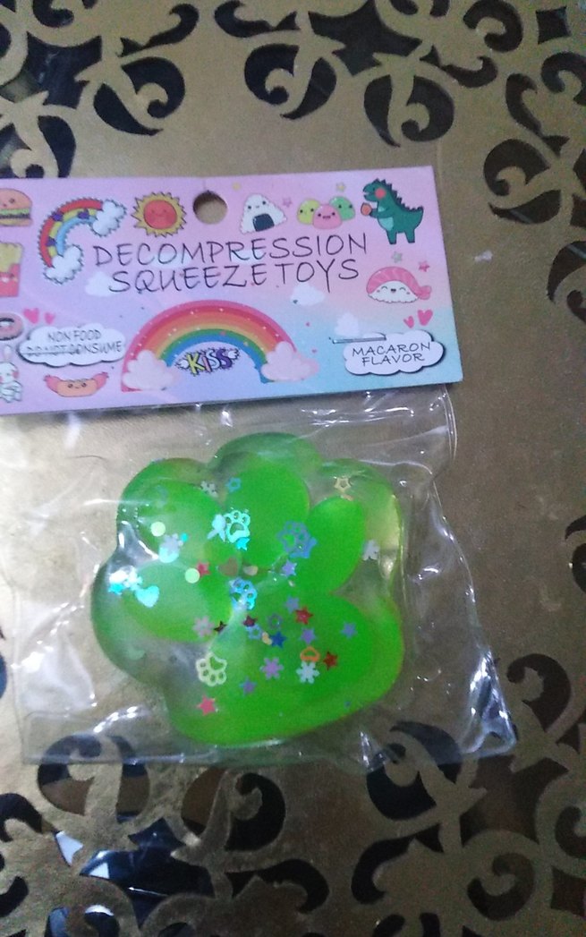 Renkli yeşil pati şeklinde sıkıştırma oyuncağı, içinde dekoratif öğeler bulunur. Çocuklar buna bayılıyorrrrrr, ister HEDİYELİK İSTER KULLANIMLIK