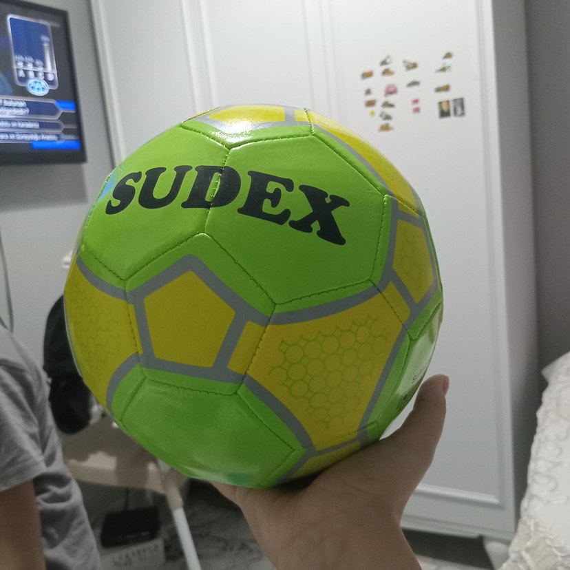 Renkli yeşil Sudex futbol topu, düzgün yüzey ve net yazılarla. Rahat oyun için uygundur. ⚽ sıfır ürün