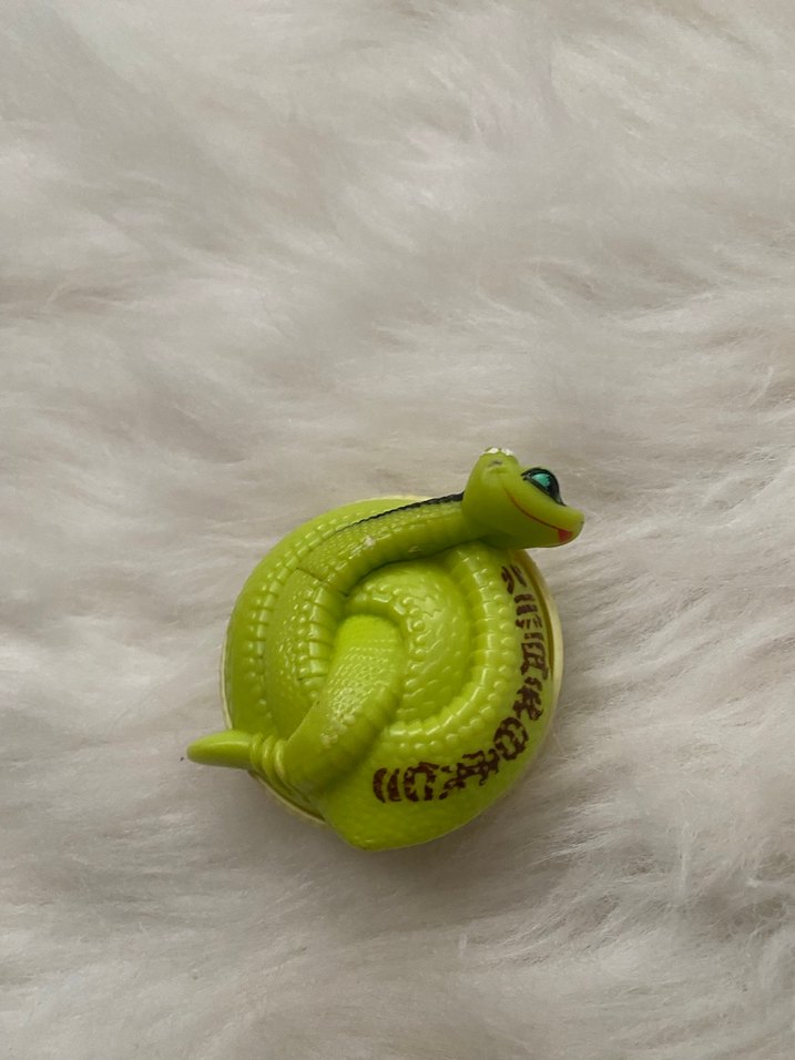 Detaylı dokuya sahip, parlak gözlü renkli yeşil yılan figürü. Düzgün malzemeden yapılmış ve kıvrılmış durumda. Elle kurulup sonra dönüyor.