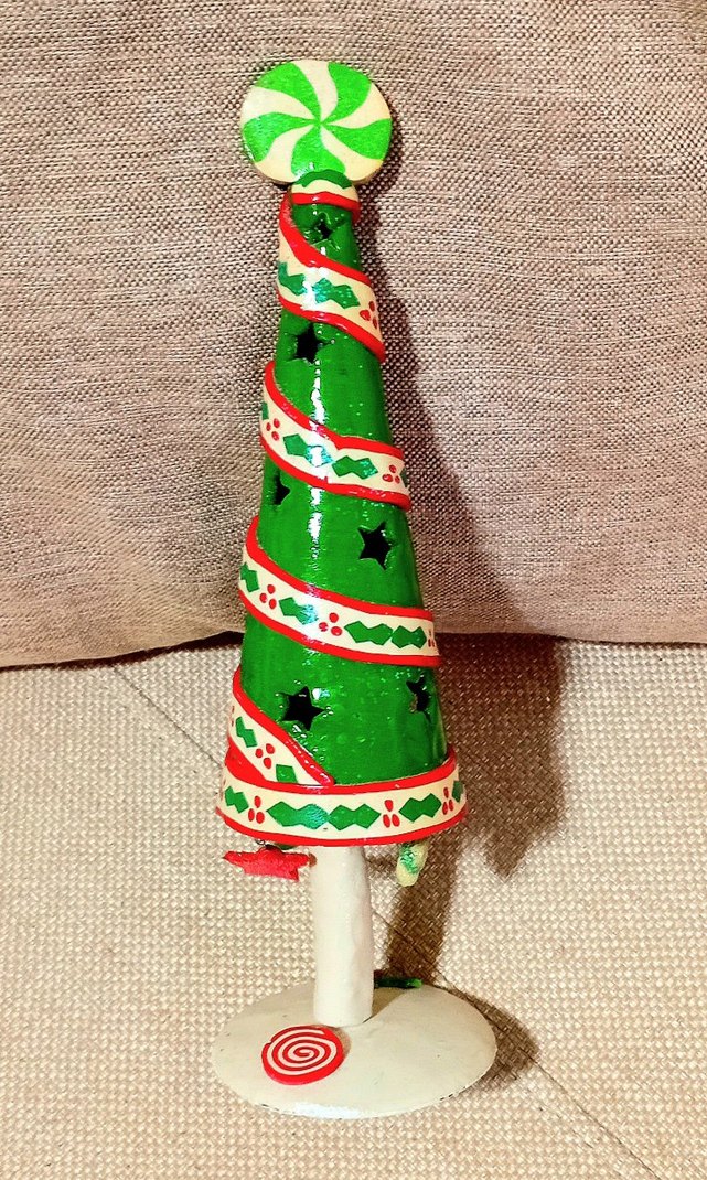 Yeşil renklil yılbaşı ağacı dekoru şeker hamuruna benzeyen seramik yılbaşı dekoru. Yuvarlak tabanında şeker tasarımı bulunur. Ayrıca led ışıklı dır. Açma kapatma düğmesi bulunur. Pillerin olduğu kapak biraz küflenmiştir lakin kullanıma engel değildir. Çalışıır durumdadır. ALICISINA ŞİMDİDEN HAYIRLI OLSUN.