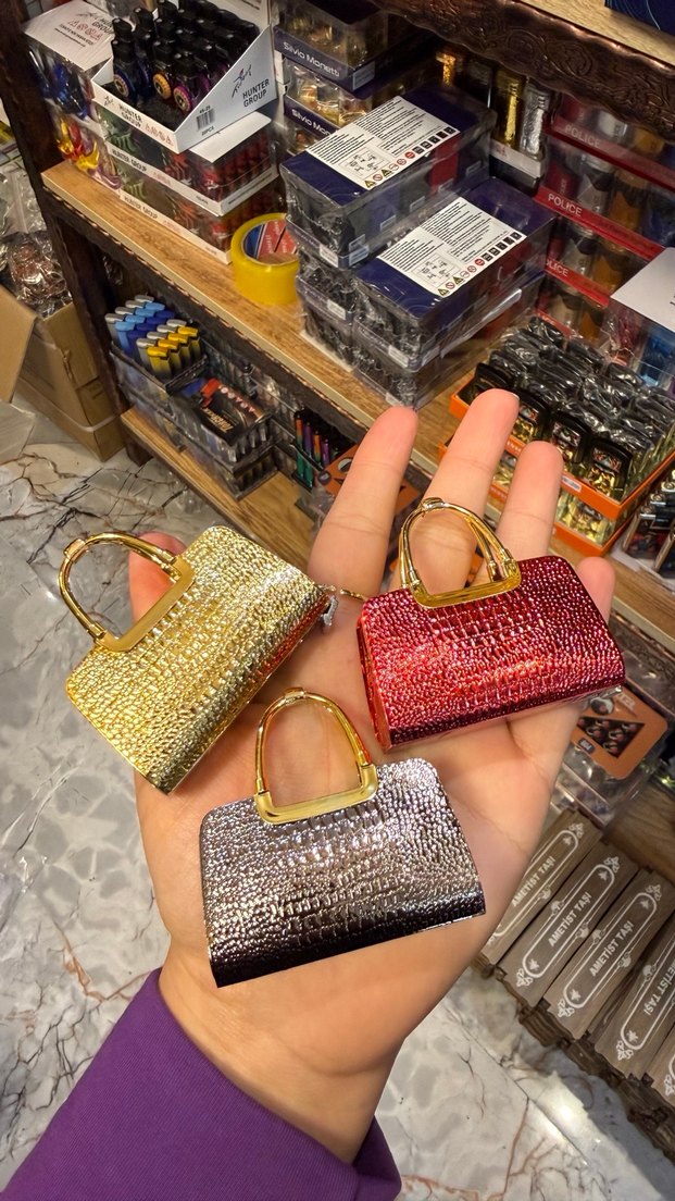 Renkli yılan derisi desenli, deri malzemeden yapılmış, parlak pullu yüzeye sahip kadın portföy çakmaklık Küçük saplı,