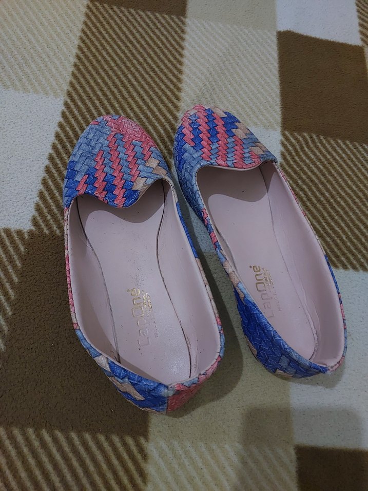 Kadınlar için pastel renklerde yılan desenli, blok topuklu, plise detaylı ve kauçuk malzemeden yapılmış rahat babetler. 38 numara