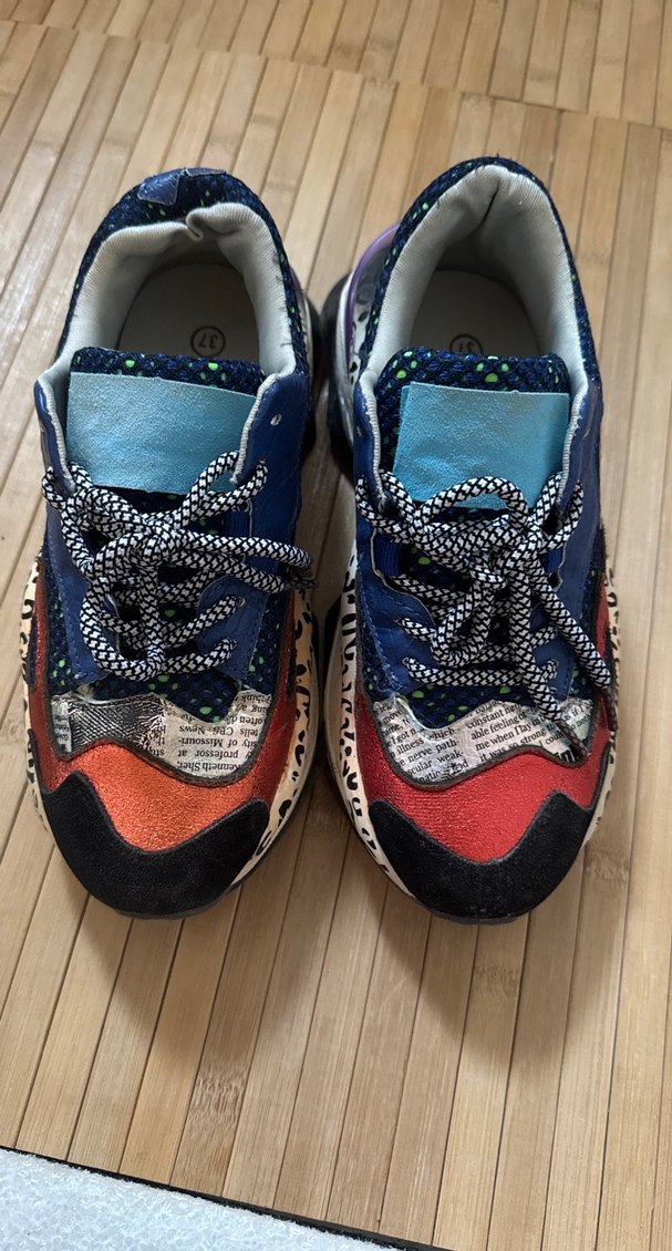 Yılan desenli, renkli kadın spor ayakkabısı. Dolgu topuklu ve cırt cırtlı, sportif ve sokak stili için uygun. Bir defa kullanıldı olmadığıiçin sarışta