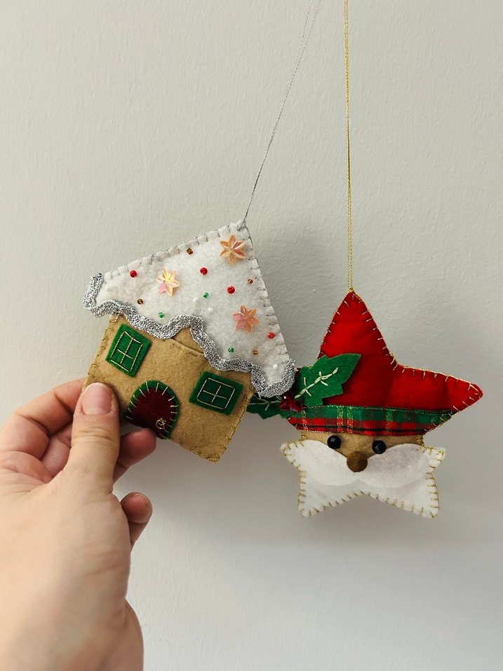 El yapımı 4’lü keçe yılbaşı dekor seti ✨ Set içerisinde: Fındıkkıran Kurabiye Adam Yılbaşı Evi Noel Baba Tamamen kaliteli keçe kumaştan, özenli ve temiz işçilikle hazırlanmıştır. Kullanım alanları: • Yılbaşı ağacı süsü • Duvar / kapı süsü • Rafa, yılbaşı masasına dekor • Hediye paketi süsleme • Ev veya ofis yeni yıl dekoru Ürün Özellikleri: • 4’lü set olarak gönderilir • Hafif, dayanıklı ve uzun ömürlü • Yeni yıl konseptine uygun renkler • Hediye olarak çok şık bir seçenek Siparişler özenle paketlenip gönderilir. Sorularınız olursa memnuniyetle yardımcı olurum