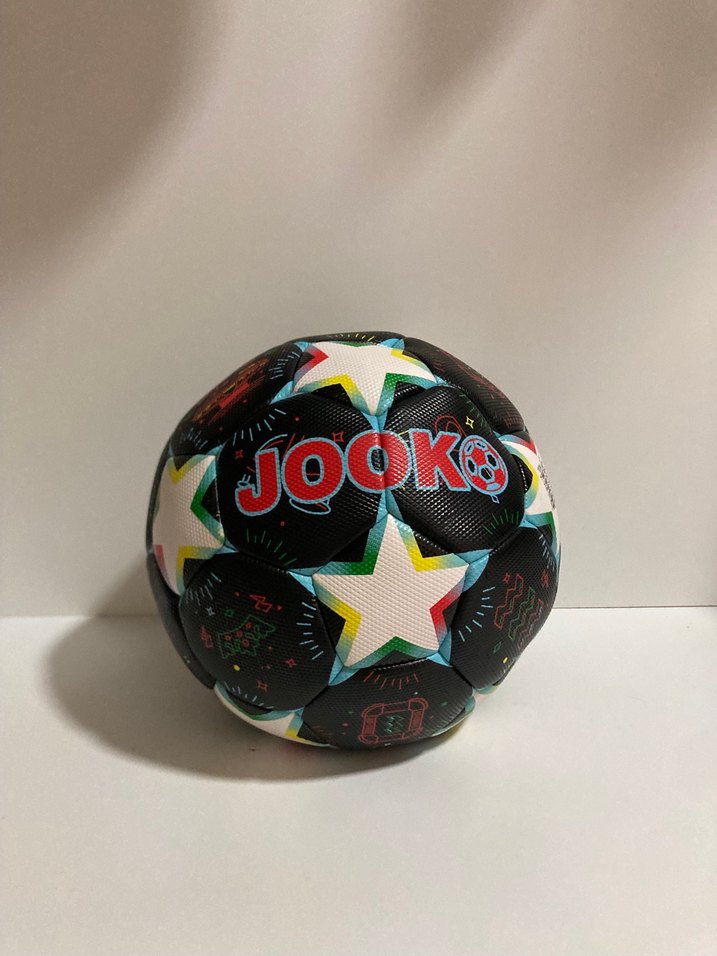 JOOKO logosu ve renkli yıldız desenleri ile çok renkli top. ⚽