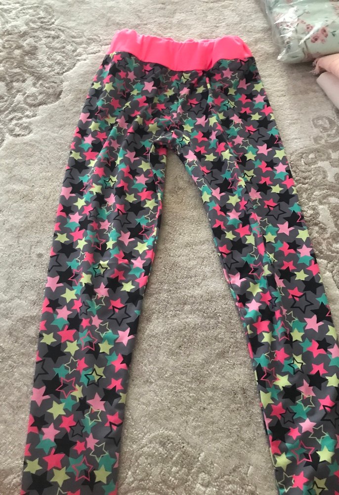 Renkli yıldız desenli, elastik bel bantlı, sentetik kumaştan yapılmış kız taytıdır.
