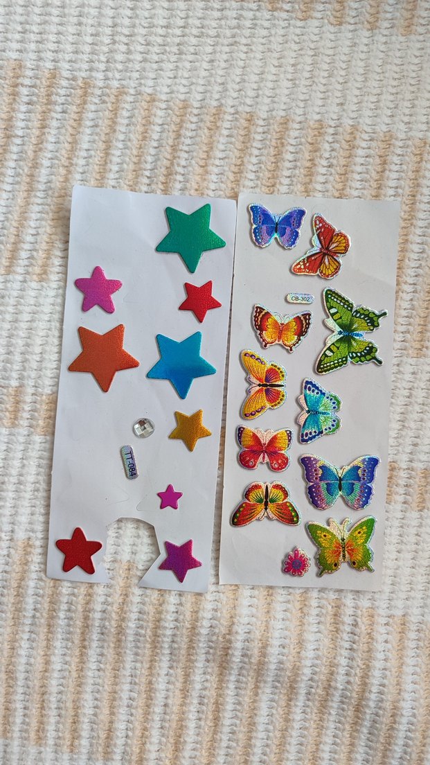 renkli yıldız ve kelebekli stickerlar, fotoğraflarda görüldüğü kadar