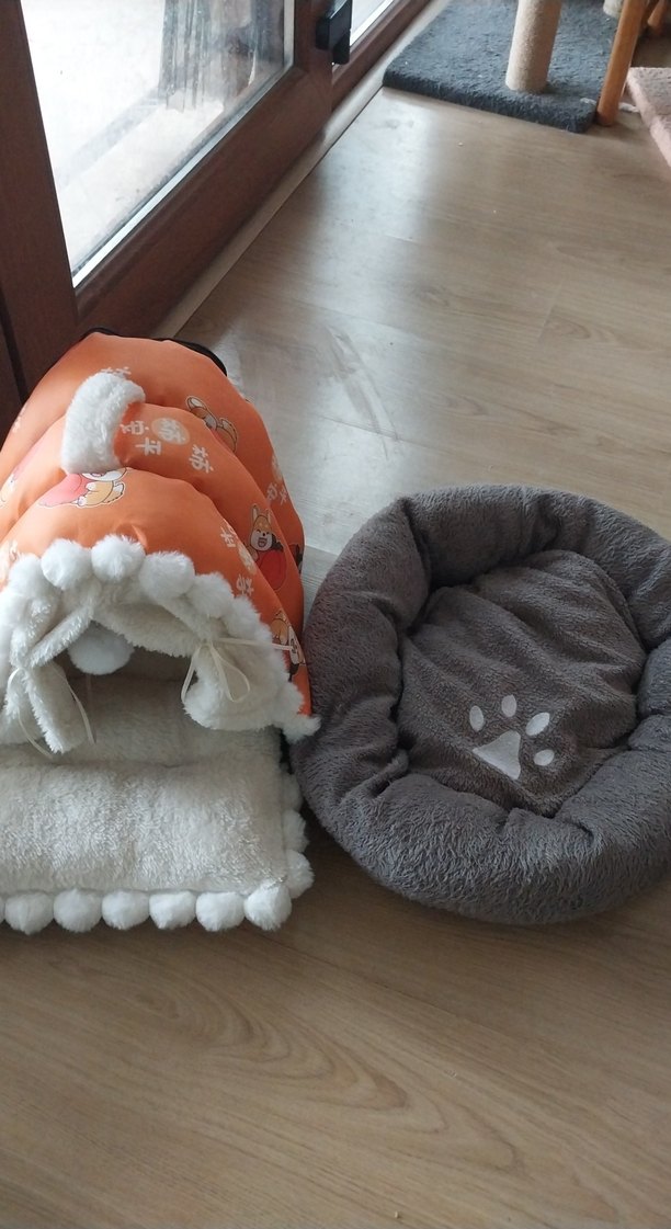 Renkli, yumuşak iç yüzeyli kedi evi, konforlu minder ve ponpon detaylarıyla rahat bir alan sunar. Model SDCD2025 yavru kediler için mini boydur.