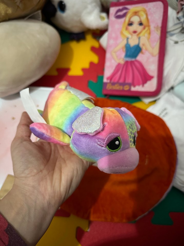 Parlak detaylara ve canlı gökkuşağı renklerine sahip, yumuşak dokulu renkli peluş oyuncak. Oyun ve dekorasyon için uygundur.