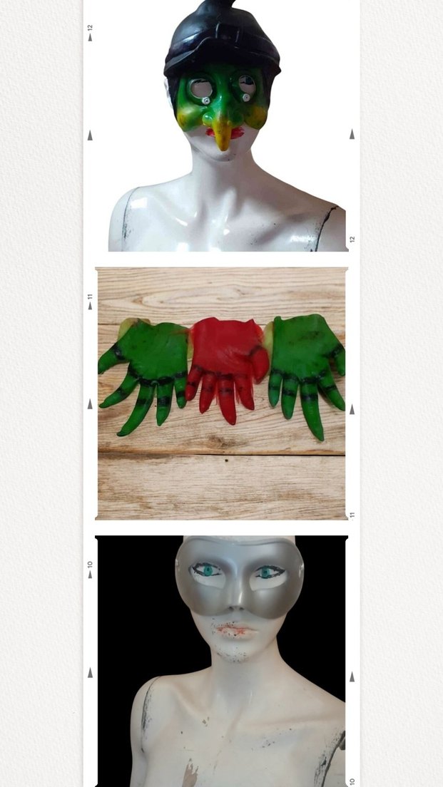 Yüz ve eller için renkli maskeler, canlı yeşil ve kırmızı tonlarda özel tasarımlar sunar. Kostüm veya dekoratif kullanım için uygundur.