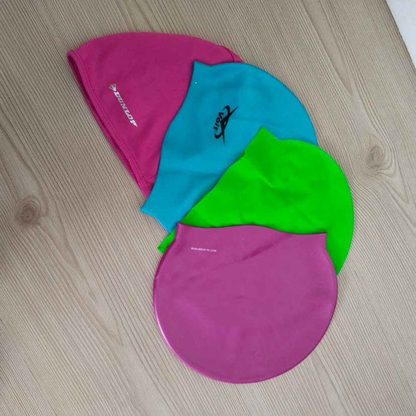 pembe, mavi, yeşil ve mor renklerde, yumuşak ve esnek malzemeden yapılmış renkli yüzme boneleri. pembelerden biri bez dir diğerleri lastik. fazlalık olduğu için satıyorum. tane fiyatıdır