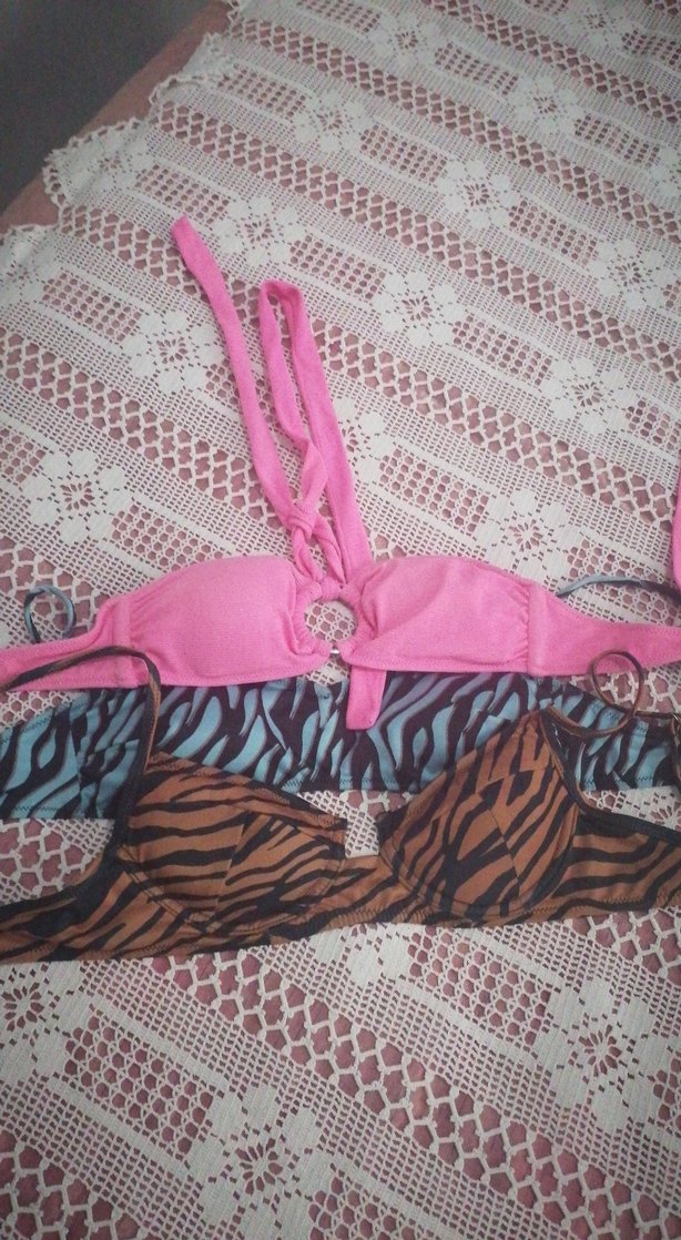 Renkli zebra desenli, kısa ve vücuda oturan, askılı ve fermuarlı detaylı bikini üstü. Bohem ve retro tarzda, dış mekan kullanıma uygun. Ucunun fıyatı toplam 100tldır