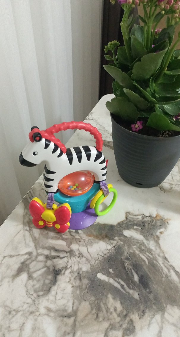 Renkli zebra şeklinde diş kaşıyıcı oyuncak, tutma sapı, çıngırak boncukları ve kelebek ile halka aksesuarları içerir.mama sandalyesi oyuncağı lütfen ciddi alıcılar yazsın