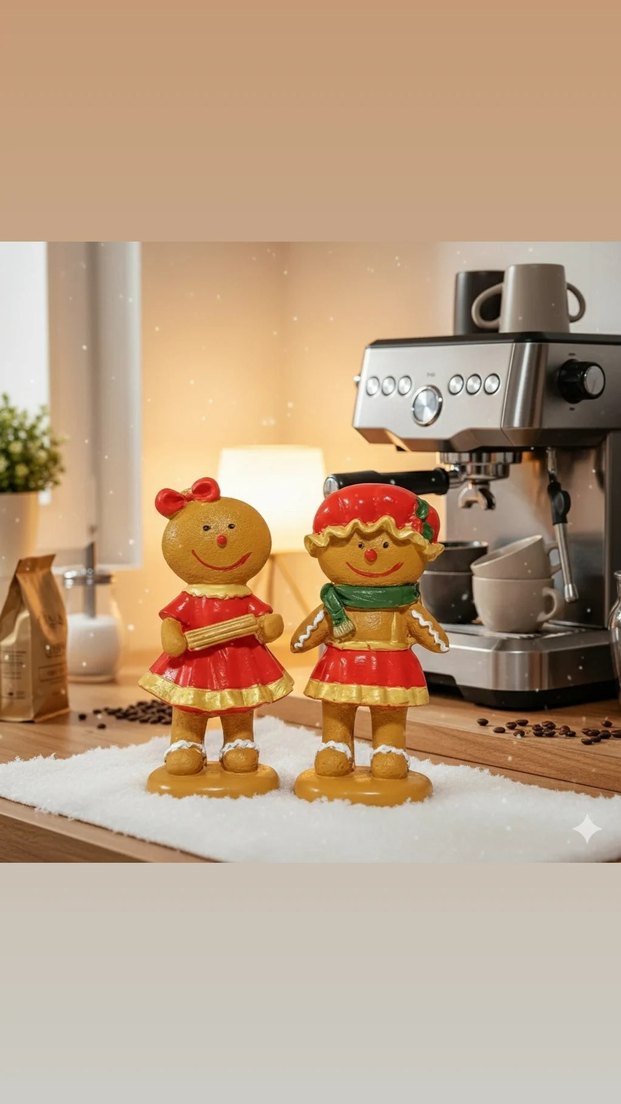 Kız ve erkek zencefilli kurabiye figürleri, renkli ve şık kıyafetlerle süslenmiş dekoratif ürünler.