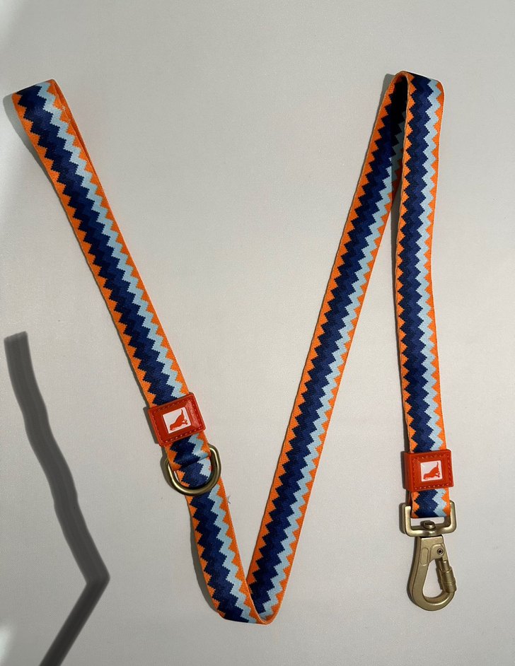 Güvenli metal kanca ve halkaya sahip renkli zigzag desenli köpek tasması. Günlük yürüyüşler için uygundur.