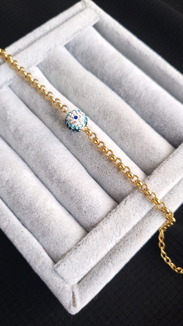 Renkli Zincir Detaylı Altın Kaplama Bileklik