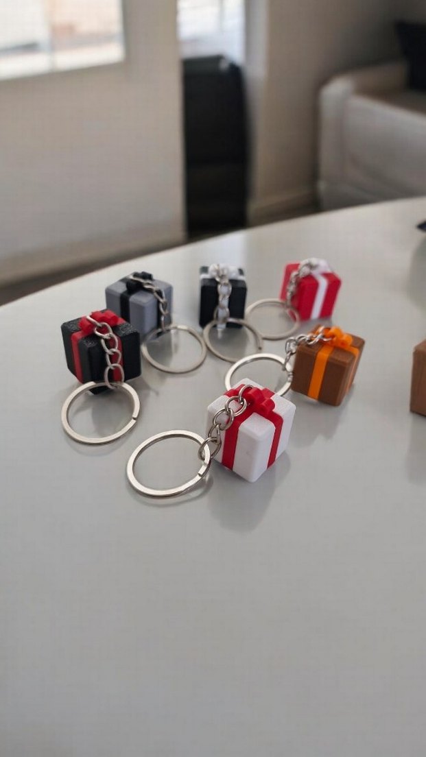 Zincir detaylı, küçük hediye kutusu şeklinde renkli anahtarlıkları Metal halka ve zincirle kolayca takılabilir. Anahtarlarınıza sıcak bir dokunuş katar. Adet fiyatıdır. Çoklu sipariş alınır 3D PLA malzeme ile üretilmiştir