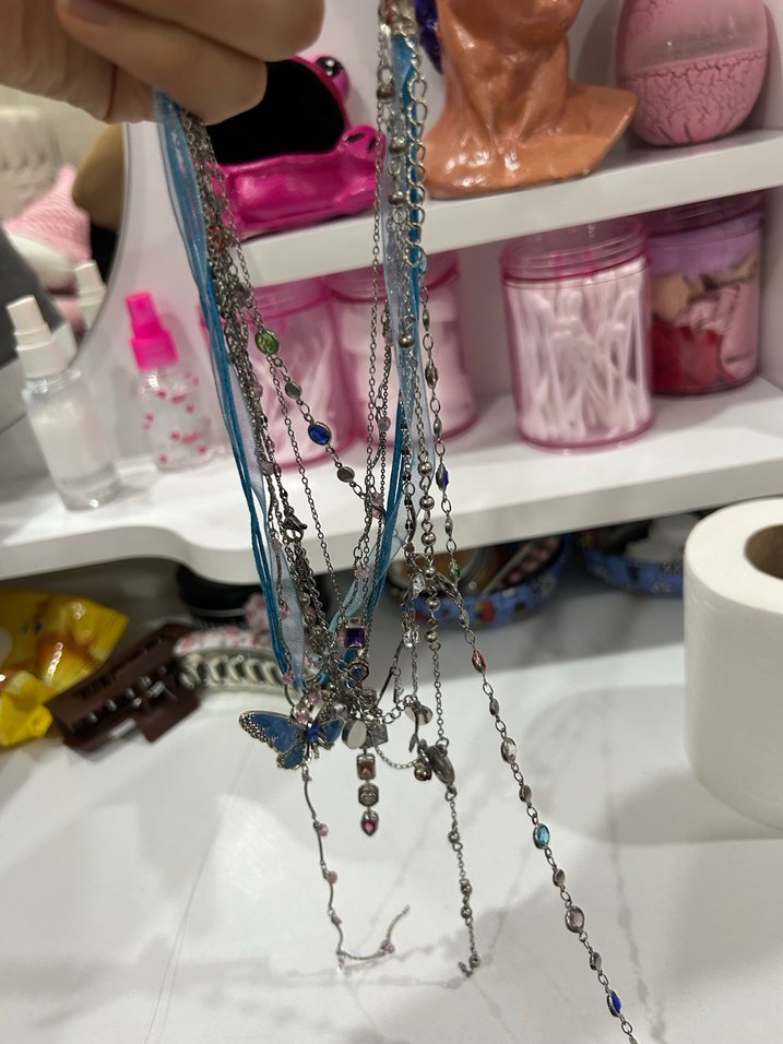 Renkli işleme desenli ve zincir detaylı, bohem, hippie tarzında çocuk takısı.