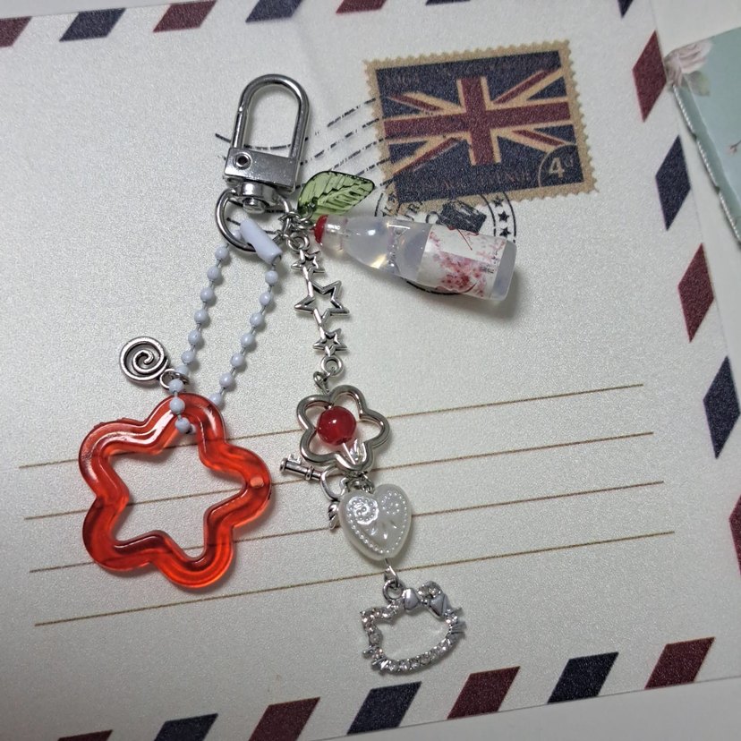 Çiçek, kalp ve yıldız figürlü zincir detaylı, renkli bohem ve vintage tarzı anahtarlık.