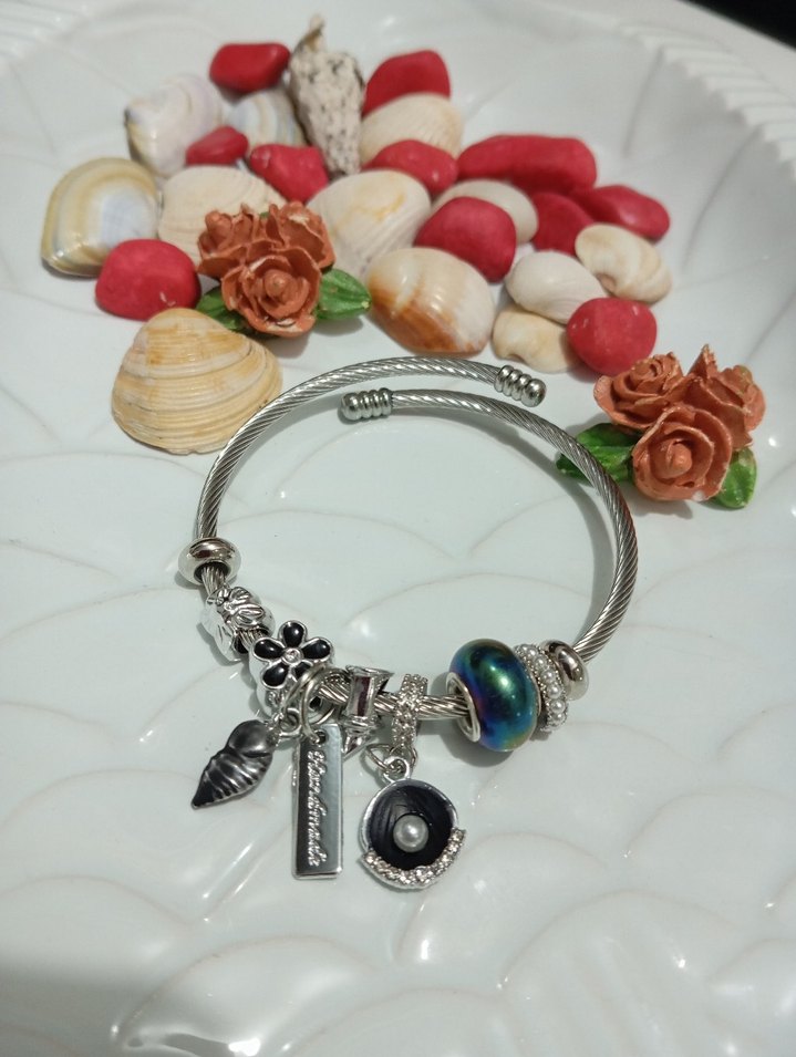 Çiçek ve deniz kabuğu desenli renkli zincir detaylı bohem bileklik, günlük kullanım için uygun.
