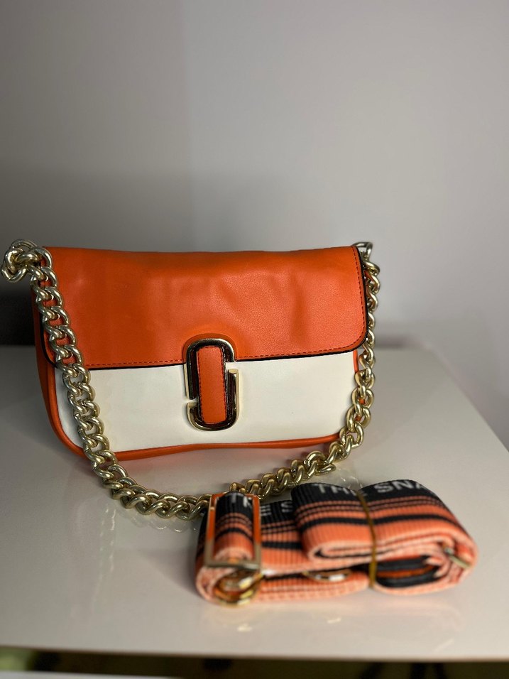 Zincir detaylı, renkli deri kadın çapraz çanta. Baskılı desenli ve çıkarılabilir askılı, sokak stili için uygun.