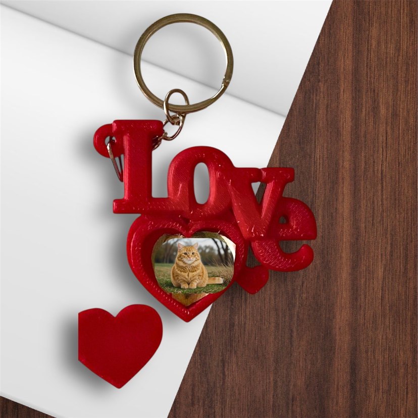 Renkli kırmızı anahtarlık, zincir detayı ve kalp şeklinde fotoğraf çerçevesi ile bohem tarzı yansıtıyor. ❤️