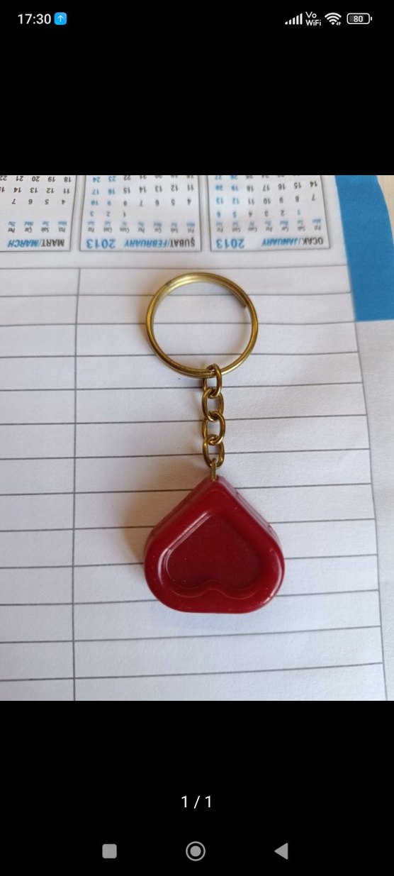 Renkli kırmızı kalp şeklinde anahtarlık, zincir detayına sahip olup minimal ve bohem tarzları yansıtır.
