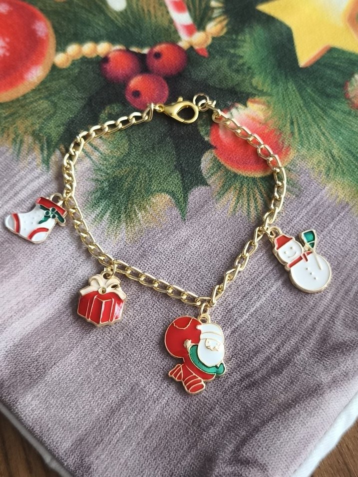 Renkli işlemeli yılbaşı figürlü zincir detaylı, günlük kullanıma uygun bijuteri bileklik