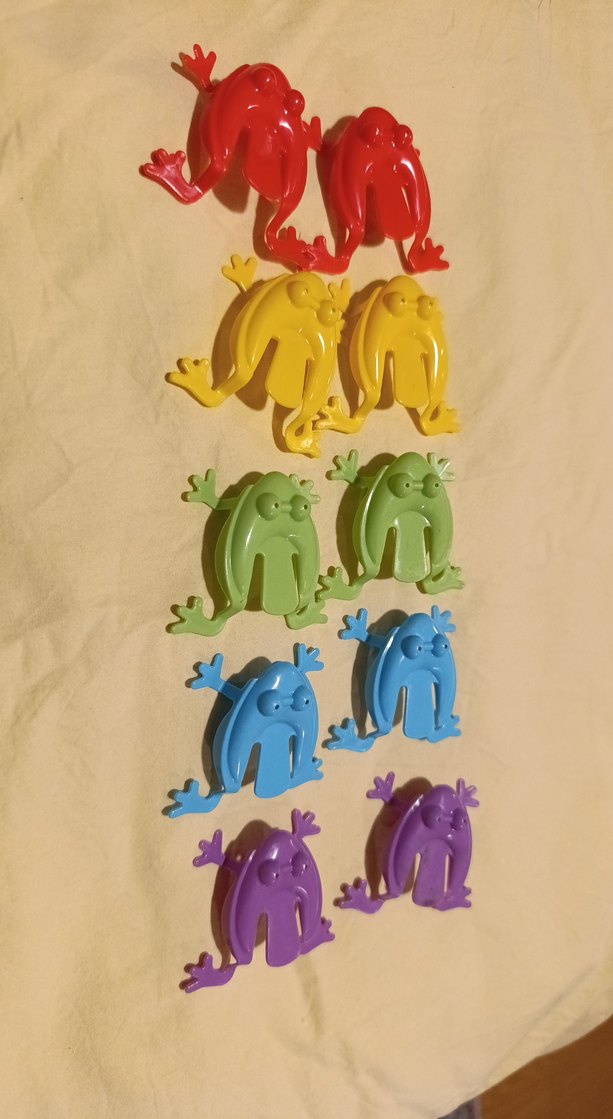 Çocuklar için kırmızı, sarı, yeşil, mavi ve mor renklerde zıplayan kurbağa 10 adet
