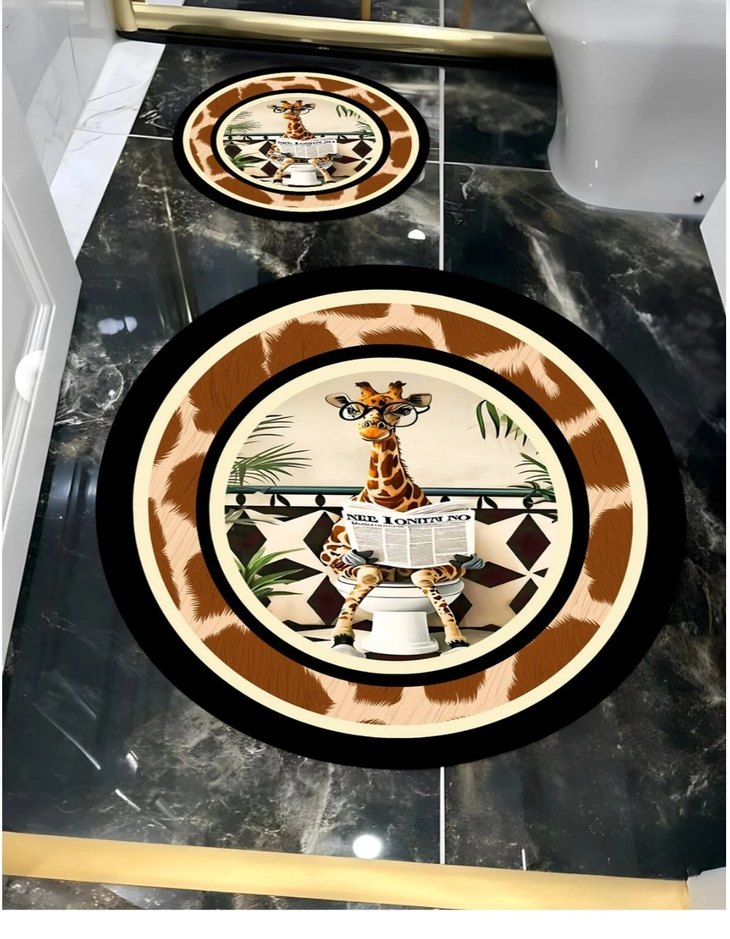 Renkli Zürafa Desenli Yuvarlak banyo paspası