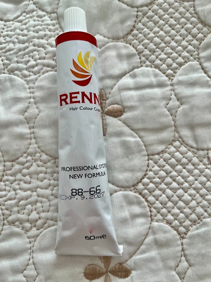 Renn markasına ait 60 ml profesyonel saç boyası, yeni formül içerir ve uzun süre kalıcı renk sağlar. Sıfır ürün