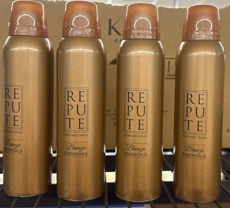Repute 4 lü Bronze Essentials kadın deodorant spreyi, bronz renkli şişede kalıcı koku sağlar.