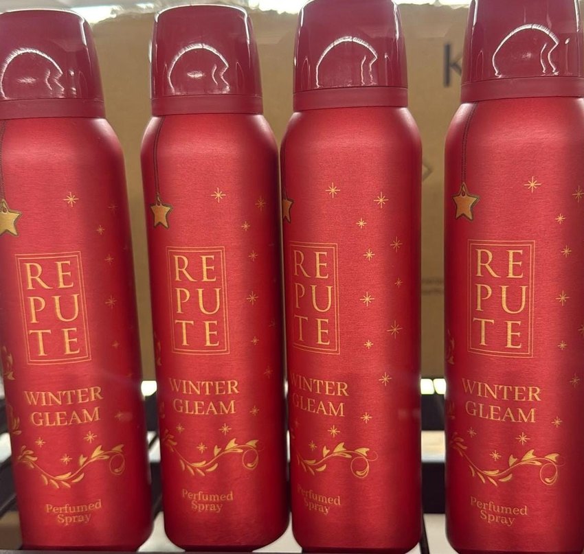 Repute 4 LÜ Kış Parıltısı kadın deodorant spreyi 150. ml , kırmızı şişede altın detaylarla parfümlü ferahlık sunar. ❄️