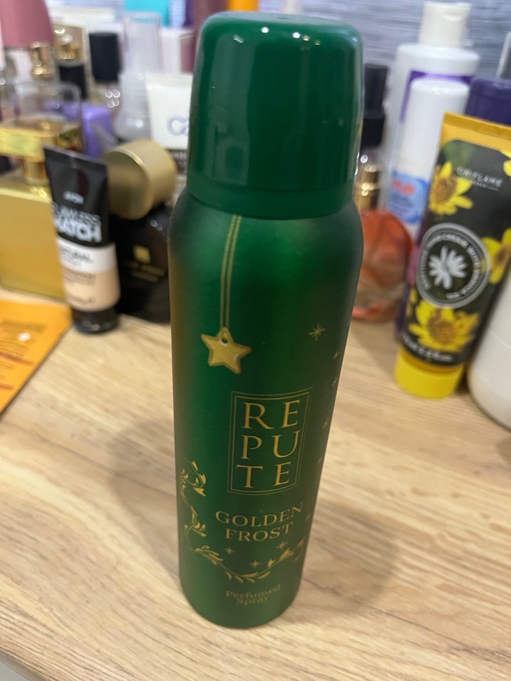 Repute Golden Frost kadın deodorant, yeşil sprey şişede uzun süre kalıcı ferahlık ve hafif koku sunar.