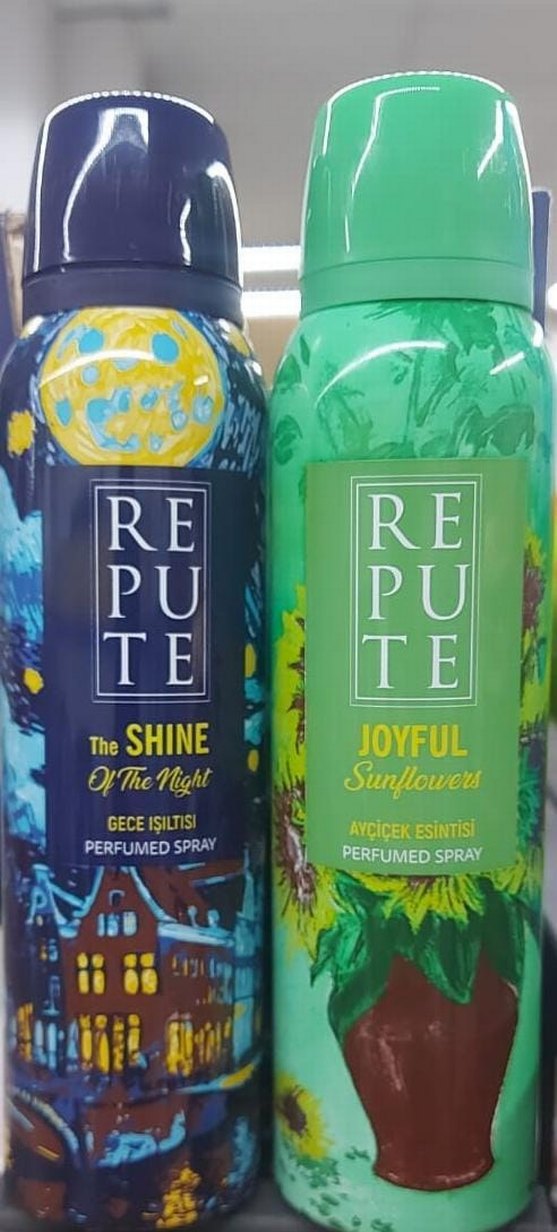 Repute kadın parfümlü sprey deodorantlar, neşeli ayçiçeği ve gece ışıltısı kokularıyla uzun süre kalıcı ferahlık ve hoş koku sağlar.
