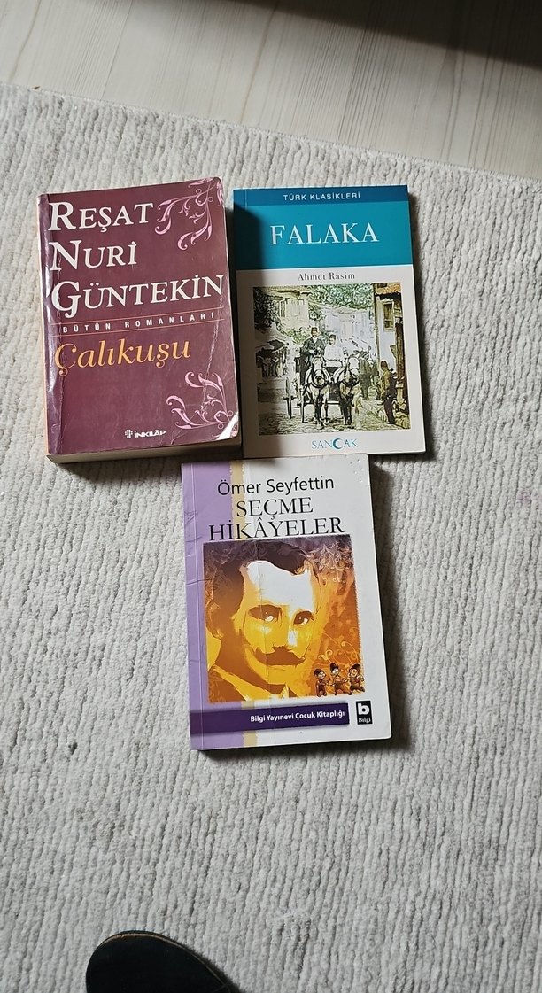 Reşat Nuri Güntekin'in "Çalıkuşu", Ahmet Rasim'in "Falaka" ve Ömer Seyfettin'in "Seçme Hikayeler" adlı klasik Türk romanları seti.