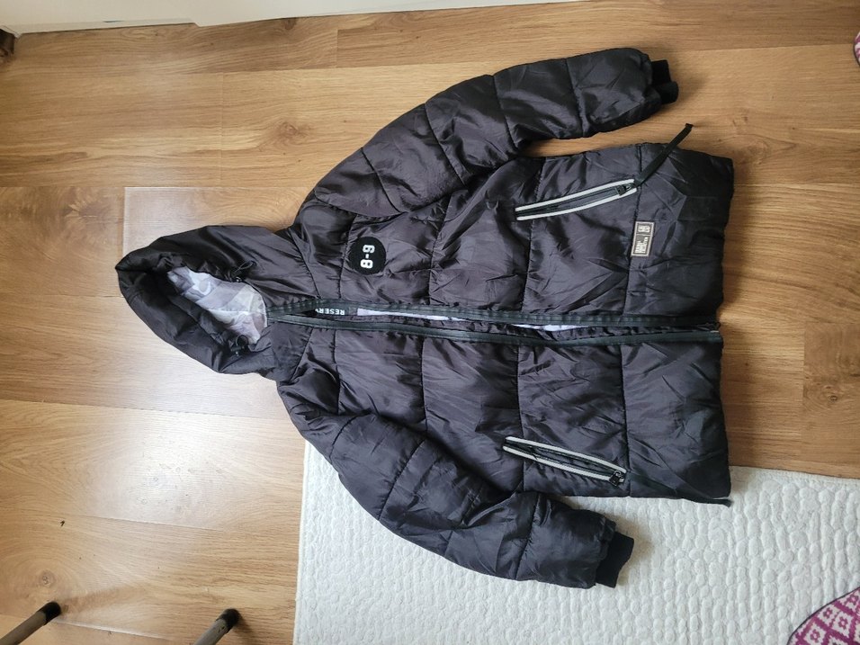 Reserved Erkek Çocuk Şişme Mont (10 - 11) Yaş. Siyah, iç kısmı Kamuflaj desenli. Kullanmaya uygundur. 65 cm uzunluk 50 cm iki kol arası.