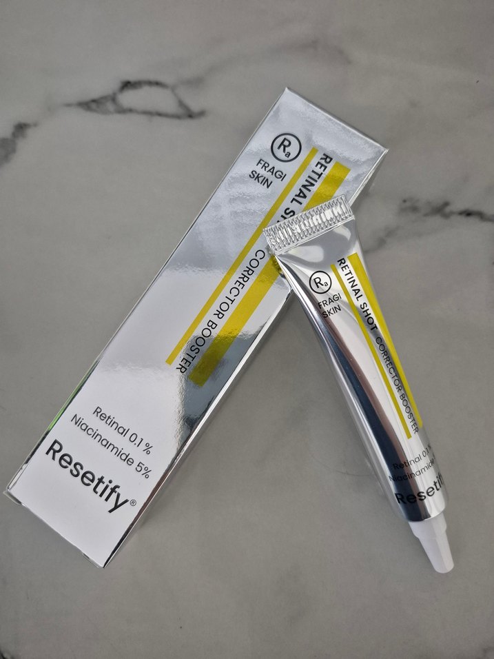 Resetify nemlendirici, cilt dokusunu ve tonunu iyileştirmek için %0,1 retinal ve %5 niasinamid içerir.