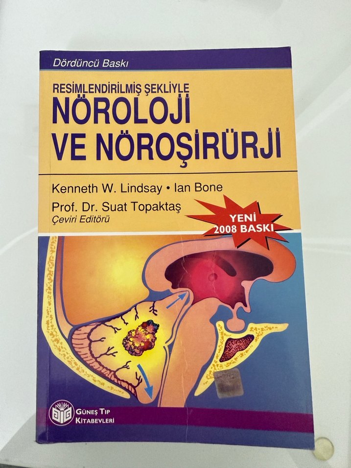 Prof. Dr. Suat Topaktaş editörlüğünde, Kenneth W. Lindsay ve Ian Bone'un 2008 dördüncü baskı resimlendirilmiş nöroloji ve nöroşirürji kitabı.