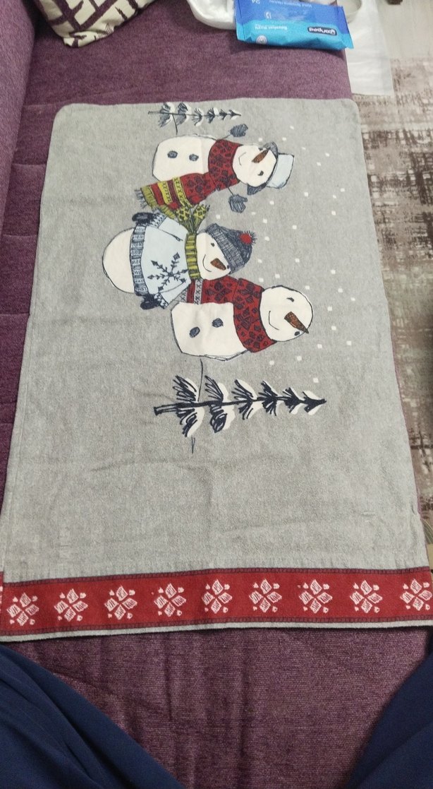 Bu yastık kılıfı, resimli kardan adamlar ve canlı detaylarla bohem tarzda tasarlanmıştır, kırmızı süslemeli kenara sahiptir. ❄️