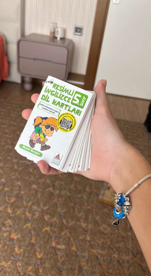 5. sınıf öğrencileri için hazırlanmış resimli İngilizce dil kartları. Kelime dağarcığını geliştirmeye yardımcı renkli kartlar içerir.