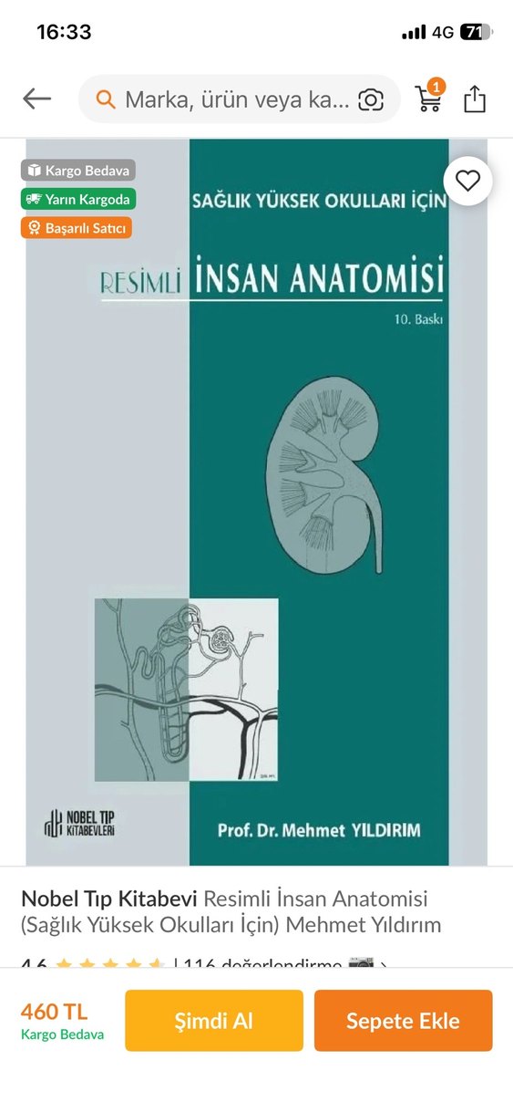 Prof. Dr. Mehmet Yıldırım tarafından hazırlanan, sağlık yüksek okulları için resimli insan anatomisi kitabı, 10. baskı, Nobel Tıp Kitabevi yayımladı. Bir iki ufak çizim var o kadar her sağlık bölümü için yeterlidir hocamın önerisi ile aldım çok faydasını gördüm