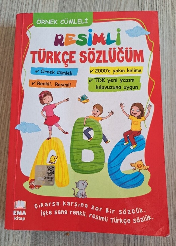 Ürün neredeyse hiç kullanılmadı tertemiz. Ancak kaybolmasın diye görselde görüldüğü gibi sayfalara isim yazdırıyor öğretmenimiz. 1 sayfada da çok minik kullanıma engel olmayan yırtığı mevcut. Görsellere ekledim. İade yoktur. #ilkokul #resimli #türkçe #sözlük